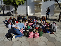 10:30 h. La mañana ha comenzado con los alumnos/as de Educación Infantil, con sus coronas, caretas,poesías ... todo con motivos del otoño. Ha resultado un rato muy divertido en el porche.